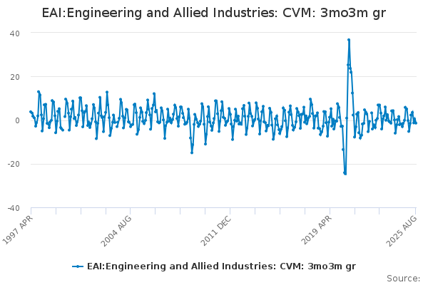Download this time seriesEAI:Engineering and Allied Industries: CVM: 3mo3m gr