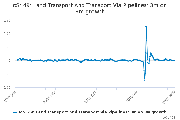 Download this time seriesIoS: 49: Land Transport And Transport Via Pipelines: 3m on 3m growth