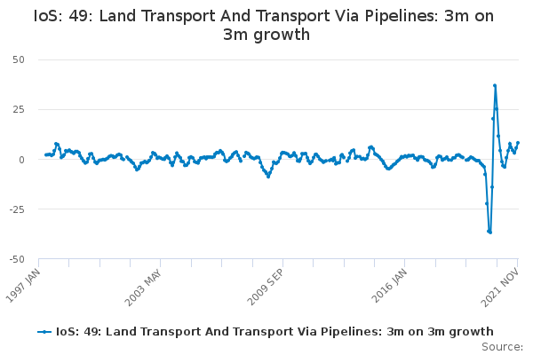 Download this time seriesIoS: 49: Land Transport And Transport Via Pipelines: 3m on 3m growth