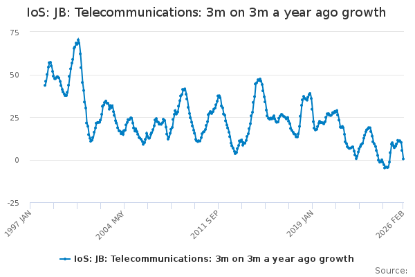 Download this time seriesIoS: JB: Telecommunications: 3m on 3m a year ago growth