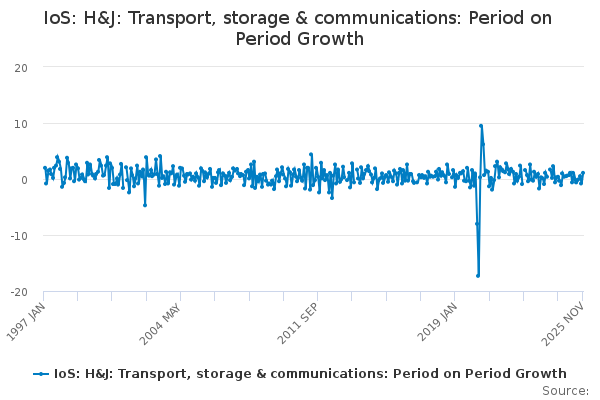 Download this time seriesIoS: H&J: Transport, storage & communications: Period on Period Growth