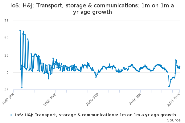 Download this time seriesIoS: H&J: Transport, storage & communications: 1m on 1m a yr ago growth