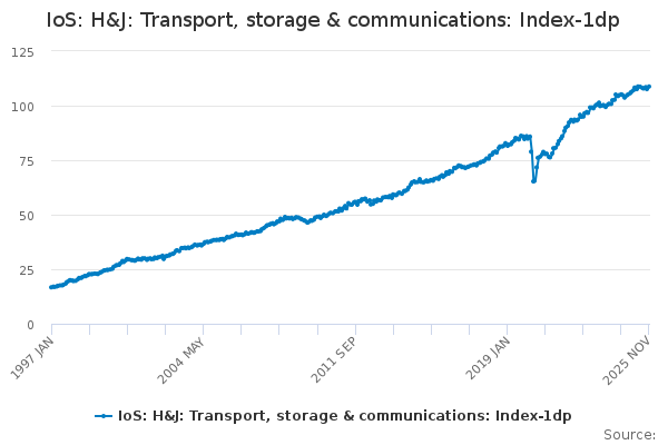 Download this time seriesIoS: H&J: Transport, storage & communications: Index-1dp