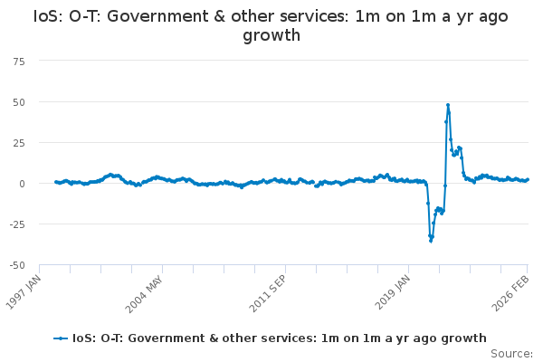 Download this time seriesIoS: O-T: Government & other services: 1m on 1m a yr ago growth