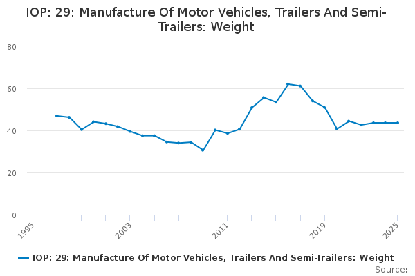 Download this time seriesIOP: 29: Manufacture Of Motor Vehicles, Trailers And Semi-Trailers: Weight
