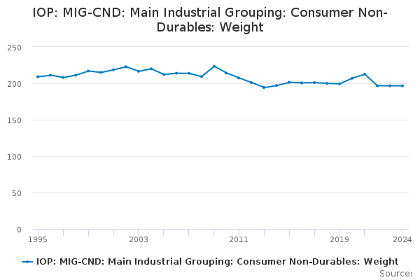 Download this time seriesIOP: MIG-CND: Main Industrial Grouping: Consumer Non-Durables: Weight