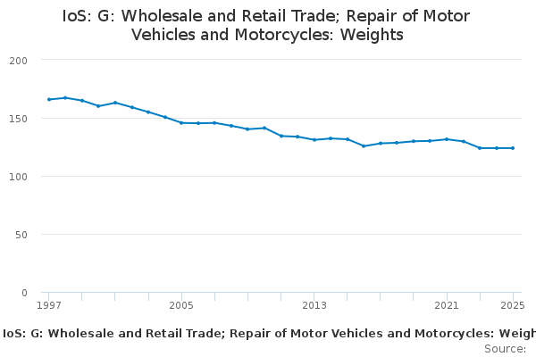 Download this time seriesIoS: G: Wholesale and Retail Trade; Repair of Motor Vehicles and Motorcycles: Weights