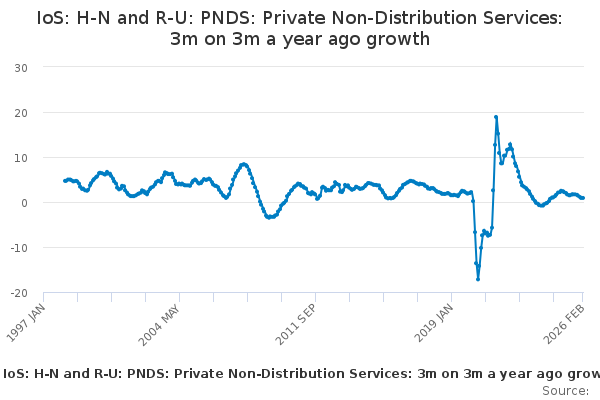 Download this time seriesIoS: H-N and R-U: PNDS: Private Non-Distribution Services: 3m on 3m a year ago growth