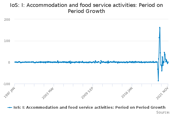 Download this time seriesIoS: I: Accommodation and food service activities: Period on Period Growth