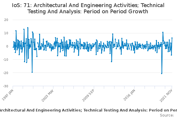 Download this time seriesIoS: 71: Architectural And Engineering Activities; Technical Testing And Analysis: Period on Period Growth