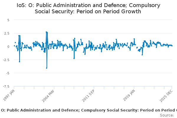 Download this time seriesIoS: O: Public Administration and Defence; Compulsory Social Security: Period on Period Growth