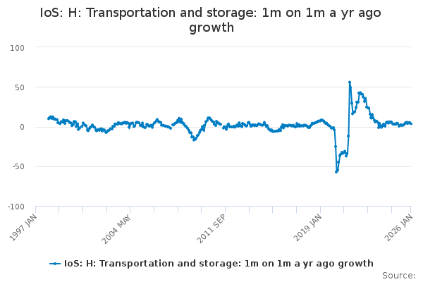 Download this time seriesIoS: H: Transportation and storage: 1m on 1m a yr ago growth