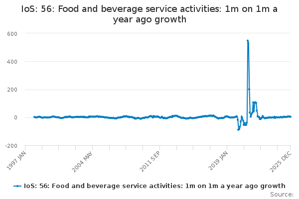 Download this time seriesIoS: 56: Food and beverage service activities: 1m on 1m a year ago growth