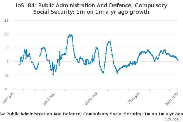 Download this time seriesIoS: 84: Public Administration And Defence; Compulsory Social Security: 1m on 1m a yr ago growth