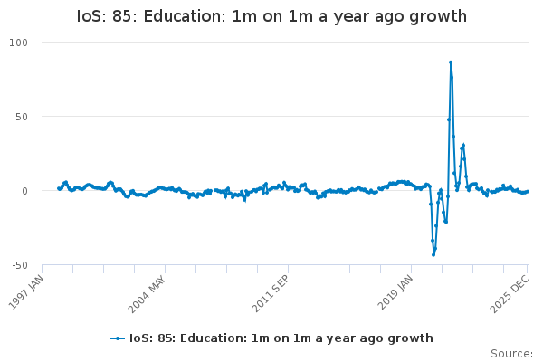 Download this time seriesIoS: 85: Education: 1m on 1m a year ago growth