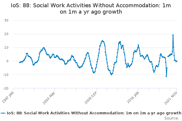 Download this time seriesIoS: 88: Social Work Activities Without Accommodation: 1m on 1m a yr ago growth