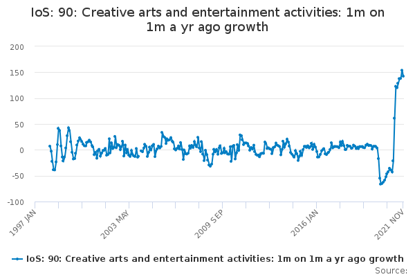 Download this time seriesIoS: 90: Creative arts and entertainment activities: 1m on 1m a yr ago growth