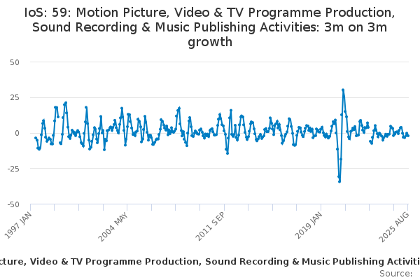 Download this time seriesIoS: 59: Motion Picture, Video & TV Programme Production, Sound Recording & Music Publishing Activities: 3m on 3m growth