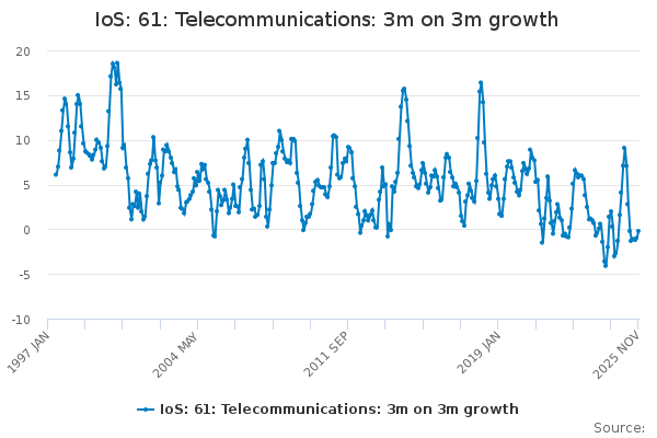 Download this time seriesIoS: 61: Telecommunications: 3m on 3m growth