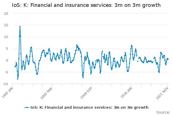 Download this time seriesIoS: K: Financial and insurance services: 3m on 3m growth