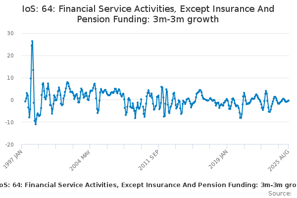 Download this time seriesIoS: 64: Financial Service Activities, Except Insurance And Pension Funding: 3m-3m growth