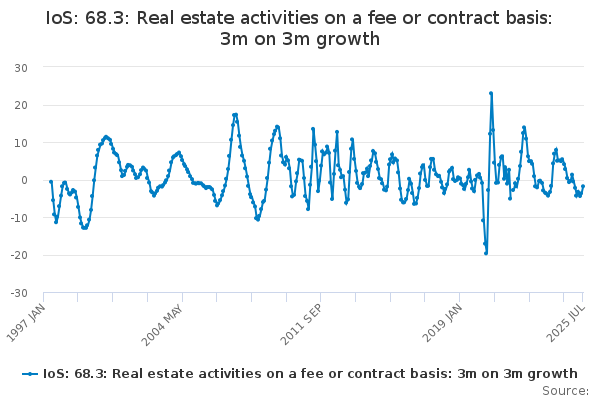 Download this time seriesIoS: 68.3: Real estate activities on a fee or contract basis: 3m on 3m growth