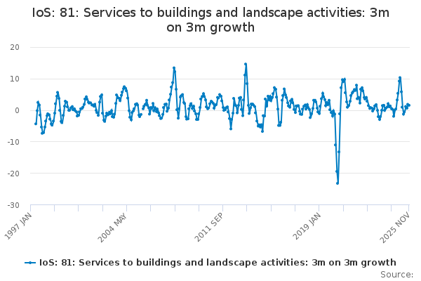 Download this time seriesIoS: 81: Services to buildings and landscape activities: 3m on 3m growth