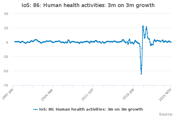 Download this time seriesIoS: 86: Human health activities: 3m on 3m growth