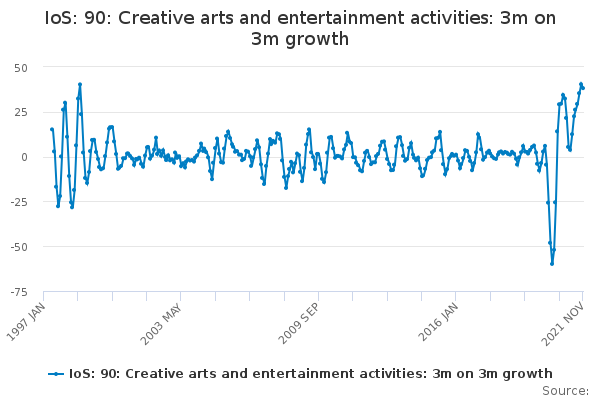 Download this time seriesIoS: 90: Creative arts and entertainment activities: 3m on 3m growth