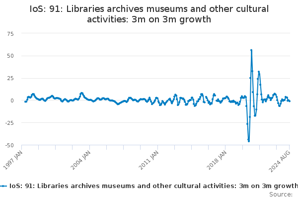 Download this time seriesIoS: 91: Libraries archives museums and other cultural activities: 3m on 3m growth