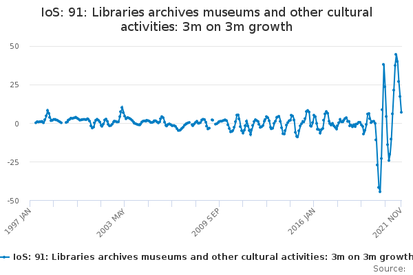 Download this time seriesIoS: 91: Libraries archives museums and other cultural activities: 3m on 3m growth