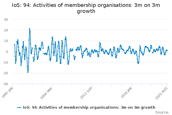 Download this time seriesIoS: 94: Activities of membership organisations: 3m on 3m growth