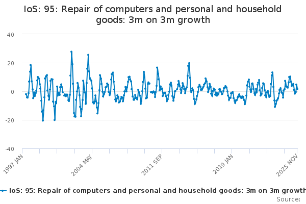Download this time seriesIoS: 95: Repair of computers and personal and household goods: 3m on 3m growth