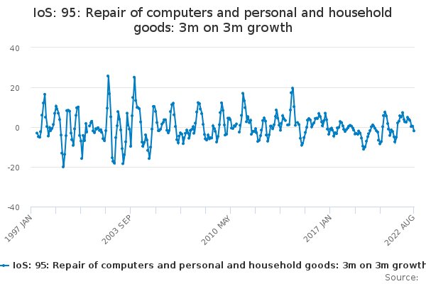 Download this time seriesIoS: 95: Repair of computers and personal and household goods: 3m on 3m growth
