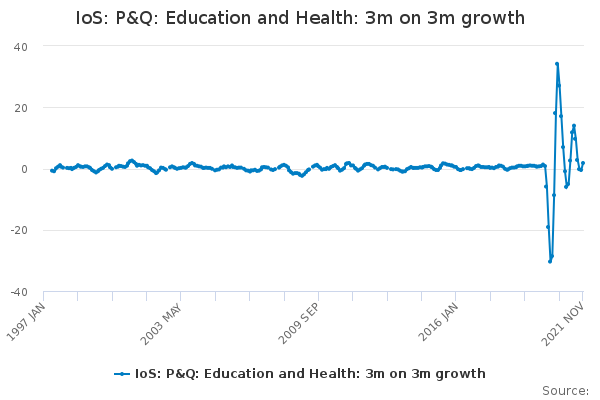Download this time seriesIoS: P&Q: Education and Health: 3m on 3m growth
