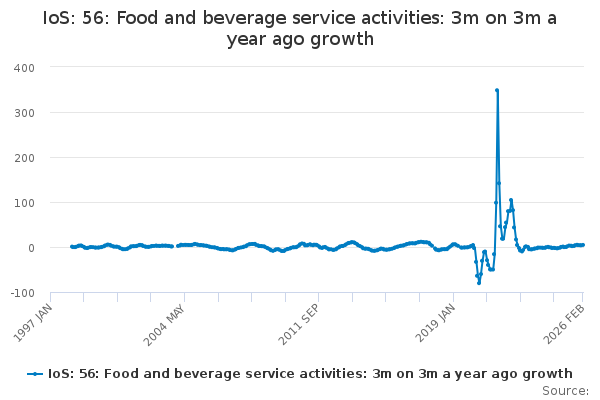 Download this time seriesIoS: 56: Food and beverage service activities: 3m on 3m a year ago growth
