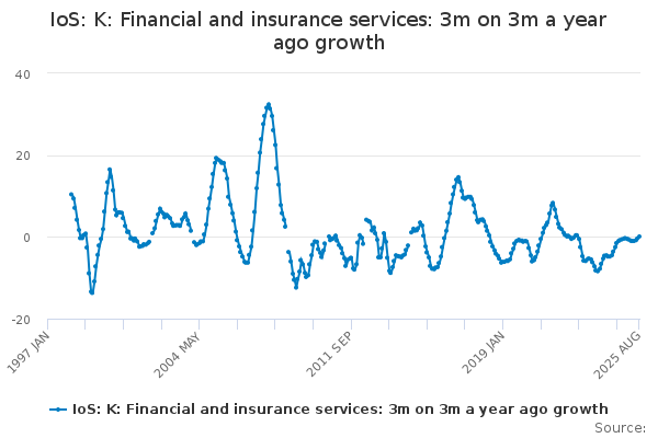 Download this time seriesIoS: K: Financial and insurance services: 3m on 3m a year ago growth