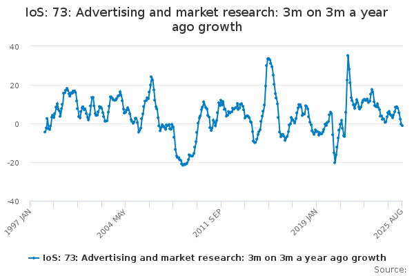 Download this time seriesIoS: 73: Advertising and market research: 3m on 3m a year ago growth