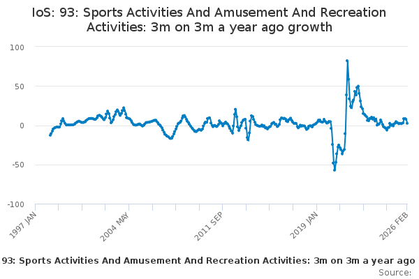 Download this time seriesIoS: 93: Sports Activities And Amusement And Recreation Activities: 3m on 3m a year ago growth