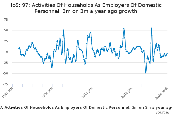 Download this time seriesIoS: 97: Activities Of Households As Employers Of Domestic Personnel: 3m on 3m a year ago growth