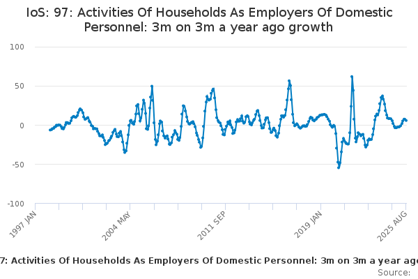 Download this time seriesIoS: 97: Activities Of Households As Employers Of Domestic Personnel: 3m on 3m a year ago growth