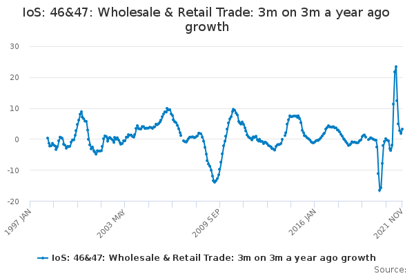 Download this time seriesIoS: 46&47: Wholesale & Retail Trade: 3m on 3m a year ago growth