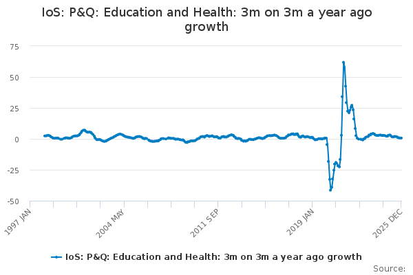 Download this time seriesIoS: P&Q: Education and Health: 3m on 3m a year ago growth