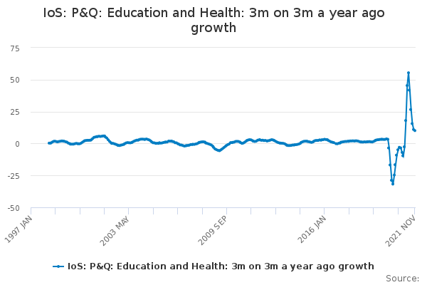 Download this time seriesIoS: P&Q: Education and Health: 3m on 3m a year ago growth