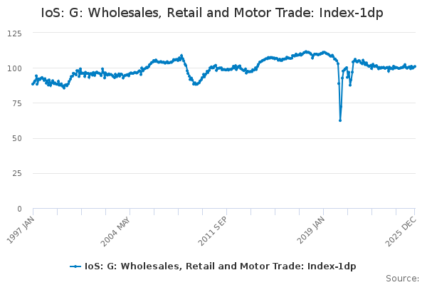 Download this time seriesIoS: G: Wholesales, Retail and Motor Trade: Index-1dp