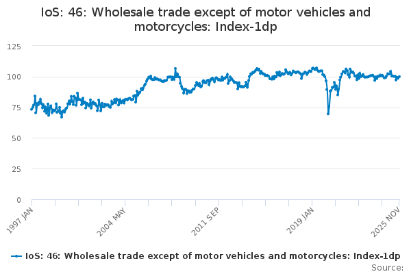 Download this time seriesIoS: 46: Wholesale trade except of motor vehicles and motorcycles: Index-1dp