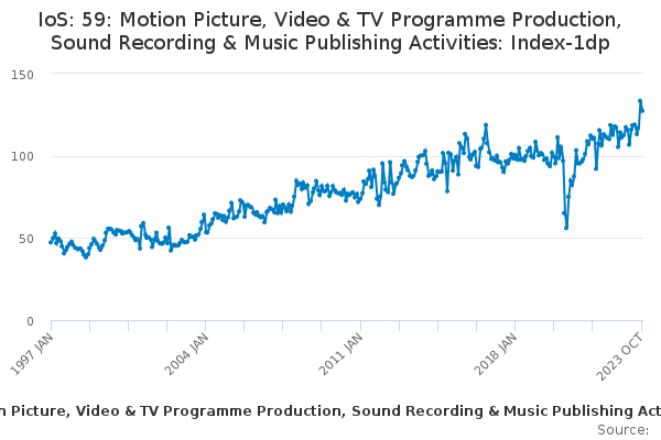 Download this time seriesIoS: 59: Motion Picture, Video & TV Programme Production, Sound Recording & Music Publishing Activities: Index-1dp