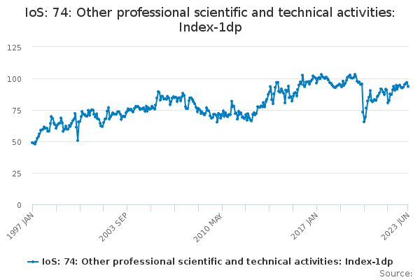 Download this time seriesIoS: 74: Other professional scientific and technical activities: Index-1dp