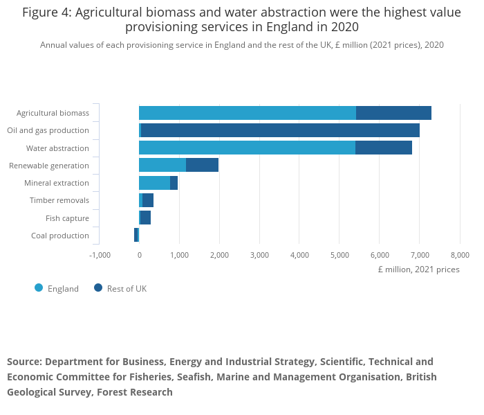 Figure 4: Agricultural biomass and water abstraction were the highest value provisioning services in England in 2020