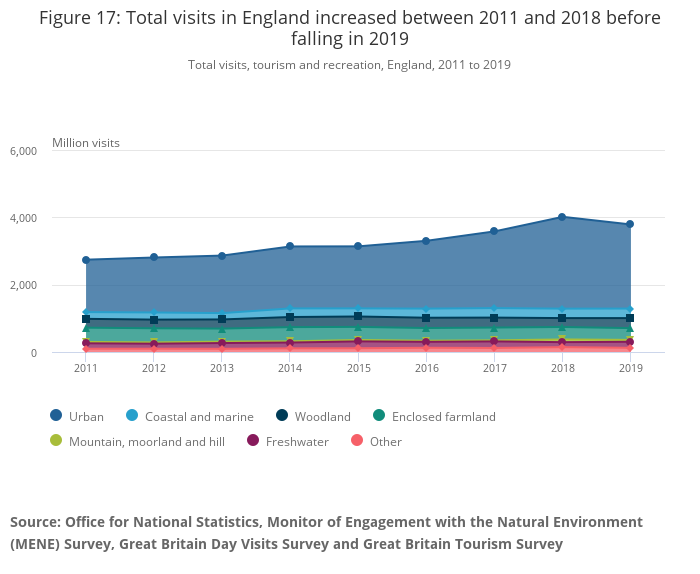 Source: Office for National Statistics, Monitor of Engagement with the Natural Environment (MENE) Survey, Great Britain Day Visits Survey and Great Britain Tourism Survey